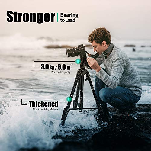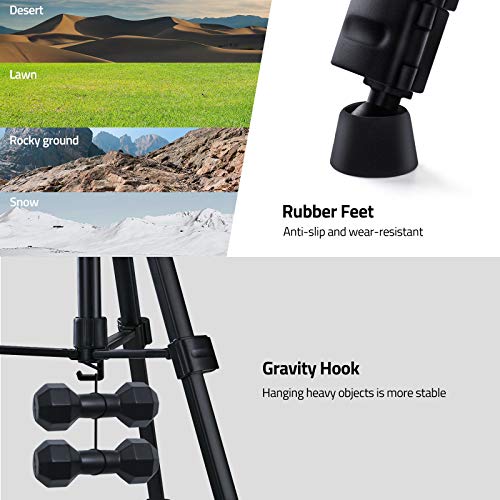 ▲ 【Stabilität】: Das Stativ besteht aus einer hochwertigen Aluminiumlegierung und die maximale Tragfähigkeit kann 3 kg erreichen. Die Verbesserte Version der rutschfesten Gummifüße und des Mittelhakens machen das Stativ stabiler und langlebiger. Es ist ein ideales Werkzeug für Outdoor-Enthusiasten und Fotografen