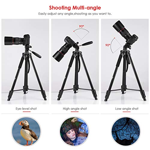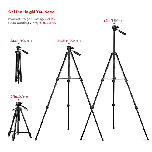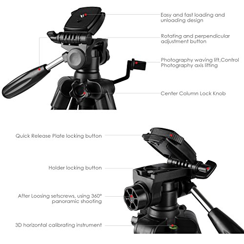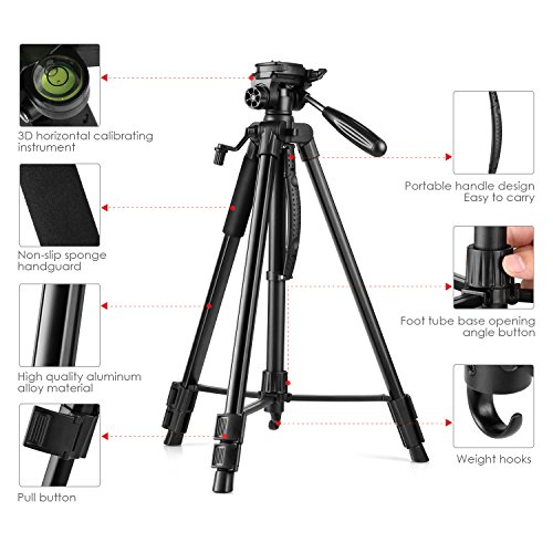 ▶FLEXIBEL UND EINSTELLBAR: Dieses Kamera Stativ kann von 56-160cm eingestellt werden. Der 360° schwenkbare 3D-Kopf ist in horizontaler und vertikaler Richtung einstellbar, bietet verschiedene Aufnahmewinkel, um Ihre Bedürfnisse zu erledigen, verpassen Sie niemals die schöne Szene.