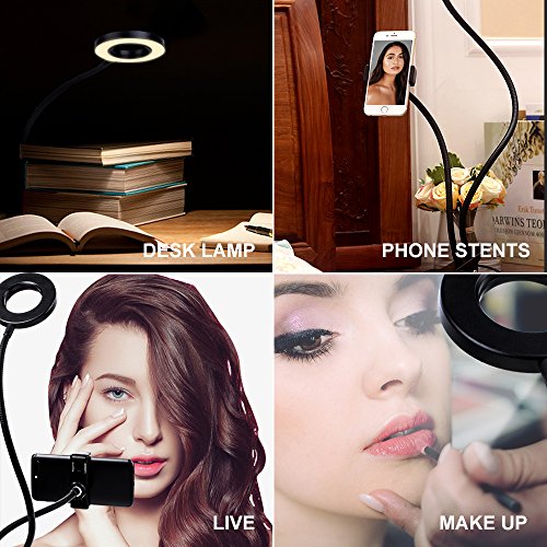 【klemme und licht】ringlicht tischhalterung Selfie Licht mit Handyhalter und Schwanenhals kann auf Tisch, tischhalterung licht Schreibtisch, Bett klammern und jeden möglichem Winkel zu drehen, um Ihre Hände zu befreien und bessere Erfahrungen anbieten.
