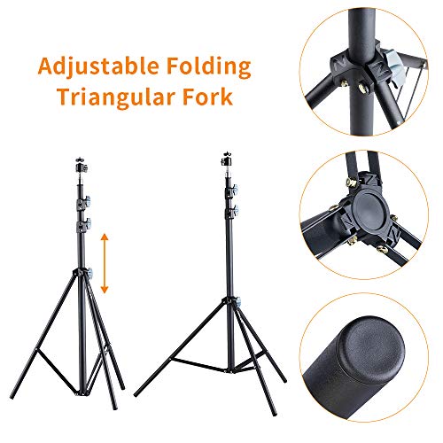 【Hart im Nehmen und leicht】: Studiostativ besteht aufgebraucht stabilen und leichten Aluminium-Magnesium-Legierung und kann für eine lange Zeit verwenden. Es wird das brandneue Sprühlack Verfahren angewendet, das nicht leicht zu abschürfen ist, verschleißfester und langlebiger qua das alte Galvanikverfahren.