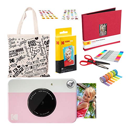 WAS SIE ERHALTEN: 1 Kodak Printomatic, 1 Einkaufstasche, 20 Blatt Zinkpapier, 6 Stk. Scrapbooking-Schere, 12 Stk. Farbmarker, 1 Aufklebersatz, 1 Sammelalbum, 6 Stk. Washi Tape, 9-farbiger Karton (54 Stk.)