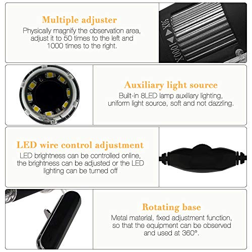 50 to 1000X with 8 Built-in LED Lights
