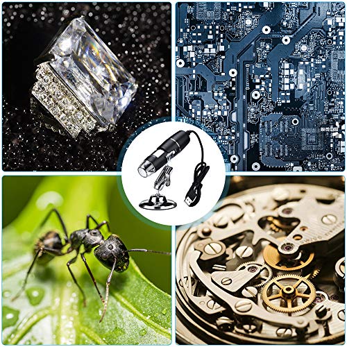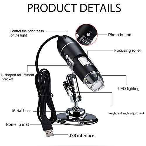 [1000-Fache Vergrößerung]—-Das USB Digitalmikroskop hat eine 50-fache bis 1000-fache Illustration.Sie können die Details von Objekten wie Kreaturen, Münzen,Schmetterlingen,integrierten Leiterplatten,Häuten,Leiterplatten,Blättern und anderen zu beobachtenden Dingen deutlich sehen Sache.Die Verstärkung eines 50-1000X Digitalmikroskops bietet Ihnen das ultimative Erlebnis,einen klaren, hochauflösenden Mikrokosmos aufzunehmen.Die Brennweite kann manuell von 0 bis 40 mm eingestellt werden.