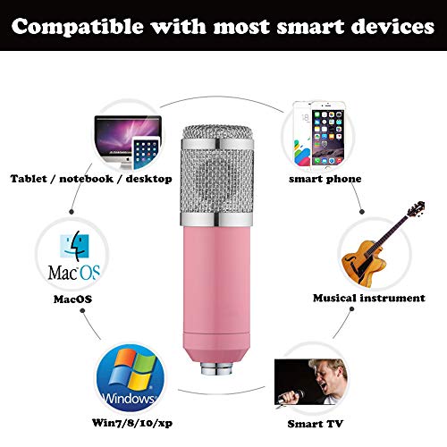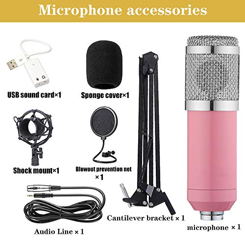 Professionelles Kondensator mikrofon set : (1) Ausgestattet mit BM-800-Mikrofon, (1) Stoßdämpferhalterung, (1) Pop-Filter, (1) Mikrofon verstellbarer Scherenarmständer, (1) Windschutzschaumkappe, (1) Leistung Kabel, (1) Soundkarte, Dieses Zubehör kann die Geräusche durch unerwünschte Vibrationen oder Sprengstoffe wirksam minimieren.