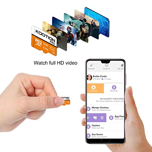 【Große Kapazität】64 GB Micro SDXC-Karte hat eine große Kapazität, die fast 57954 Fotos von 3 MP, 160 Filme von 400 M in 4K Full HD, 8000 Songs von 8 m ablegen kann. Die 64 GB Speicherkarte kann auch zusätzliche Kapazität zu Ihren Geräten hinzufügen, um den Speicherplatz des Gerätes zu ackern.