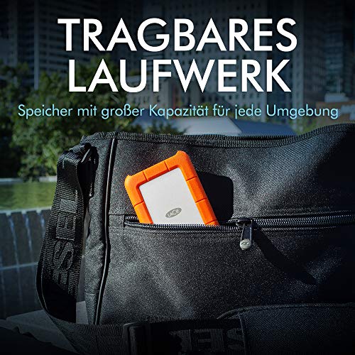 Die portable Festplatte Rugged USB-C von LaCie vereint robuste Langlebigkeit und fortschrittliche USB-C-Schnittstelle. Das Abschluss ist ein wahrer Tresor für Ihre Daten, der mit Computern der nächsten Generation wie dem Macbook von Apple sowie USB-Computern kompatibel ist.
