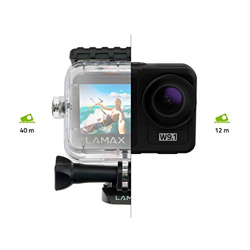 LAMAX W9.1 REAL Action Cam 4K 60fps mit Stabilisierung, Unterwasserkamera, wasserdichte Kamera, Camcorder mit Dual Display, Helmkamera und 21 Zubehör Kit, Wi-Fi, Zeitlupe