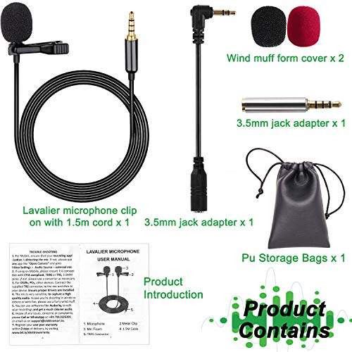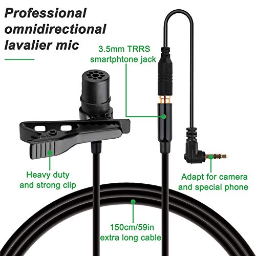 Professioneller Omnidirektionaler Lavalier-Mikrofon: Das 3,5-mm-Ansteckmikrofon mit fortschrittlichem, einadrigem, abgeschirmtem Kabel aus APS-Material ist sehr langlebig. 1,5 Meter lang, kann für die meisten Gelegenheiten frei verwendet werden. Der omnidirektionale Mikrofon kopf ist nicht leicht zu heulen und hilft Ihnen, eine klare Stimme zu erhalten. Geeignet für verschiedene mobile handy Smartphones mit 3,5-mm-Buchse wie iPhone 6 / 6s 7/7 plus / 8, Samsung Huawei.