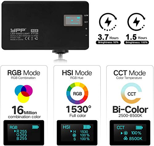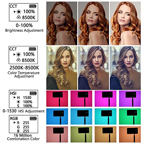 🌈 【Farbvielfalt und HD-Farbdisplay】Das HD-Display zeigt deutlich die aktuelle Helligkeit und Farbtemperatur an.✔️360 Arten einstellbarer Farben, jede Farbe hat eine Sättigungsstufe von 1-100,farbkombination 16 Millionen.✔️Farbtemperaturbereich: 3200k~8500k(±200k).✔️Genaue Helligkeitseinstellung von 0 ~ 100%.✔️CRI 95+,TLCI 97+.HSI 0-1530.Das ein kraftvoller Farbverständiger ist, es hilft die Farbe des Objekts wiederherzustellen sowie zu bereichern und bietet Ihnen einen natürlichen und lebendig.