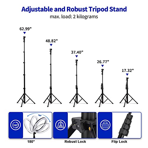 ➰【63 Ertrag faltbares Aluminiumstativ】Hochwertiges Aluminiumstativ ist robust und hart im Nehmen. Die Stativhöhe kann von 17 bis 63 Ertrag eingestellt werden. Das leichte Stativ wiegt dessen ungeachtet 440 g und ist leicht zu unterstützen. Die Höhe von 160 cm bietet Ihnen eine bessere Lichtquelle.