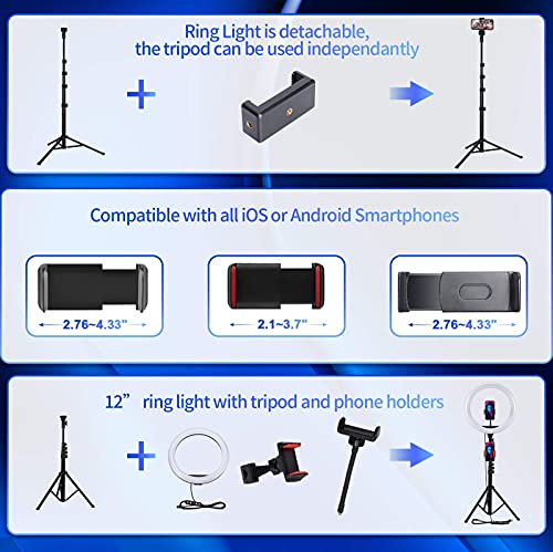 ➰【Verbesserte 12-Ertrag-Ringlichter】 Das 12-Ertrag-Rechtslicht mit 190-teiligen LED-Lampenperlen hat eine lange Lebensdauer, ohne die Lampe zu bearbeiten. 3200K bis 6500K Farbtemperatur, 1000LM Lumen, UV-frei, flimmerfrei, keine Geisterbilder, keine Blendung, was für Ihre Haut leistungsfähig ist.