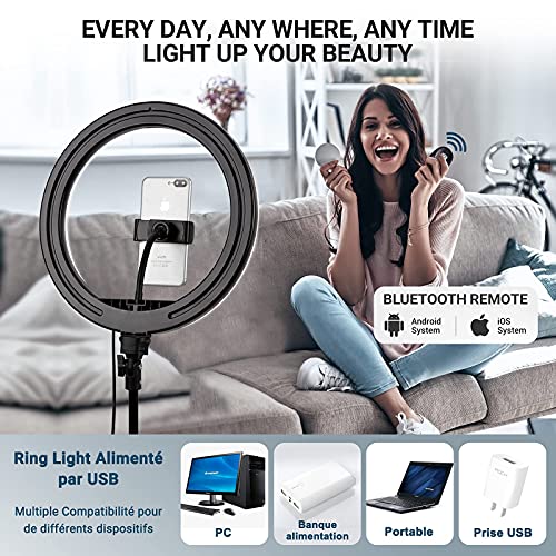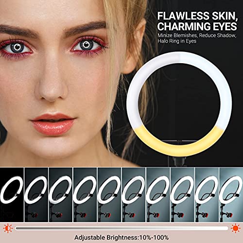 ➰【10 Helligkeitsstufen】10 Helligkeiten und einem größeren Dimmbereich als andere Produkte. Erhellen Sie ein dunkles Büro oder einen dunklen Raum. Reduzieren Sie Schatten und verschönern Sie Gesicht und Augen. Die Ring-LED-Lampe ist perfekt für Selfies, Make-up, Tik Tok, Live-Streaming, Shooting Fill Light, Filme, Fotografieren, Vlogs, Studio, Videokonferenzen, Youtube, Zoom, Blogger und das Lesen von gehören.