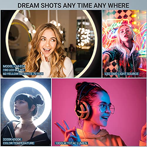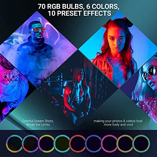 ➰【6 RGB-Farben & 3 normale Farben】Dieses RGB-Ringlicht hat 6 Farblicht und 3 normales Licht. Verifizierte Farbauswahlmöglichkeiten sind für unterschiedliche Umstände ausgelegt und sorgen für eine perfekte Beleuchtung. Machen Sie Ihre Fotografie, Live-Übertragung, Make-up, Online-Kurse professioneller und schöner.