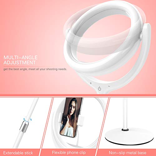 【2020 Upgrade-Abart】 TSYMO Selfie-Ringlicht ist mit einem halbrunden Halter, der Ihnen helfen kann, den perfekten Winkel zu finden, um Ihre spezifischen Anforderungen zu fertig werden. Im Einigung zu anderen Stativständern ist der runde Metallfuß so konzipiert, dass er die Stabilität erhöht, sodass er nicht umkippt. 96 Unvollendetes fortschrittliche LED-Lampenperlen lassen Ihre Haut heller und glatter aussehen.