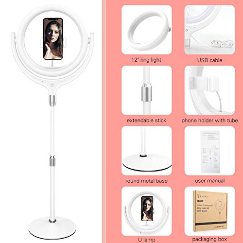 【Paket & Garantie】 Tsymo Ringlicht-Kit kommt mit 1 x 30,5 cm LED-Ringlicht, 1 x Ständer, 1 x Telefonhalterung, 1 x mehrsprachige Bedienungsanleitung (evtl. nicht in deutscher Sprache). Geschmack geben Sie es einfach risikofrei leer.