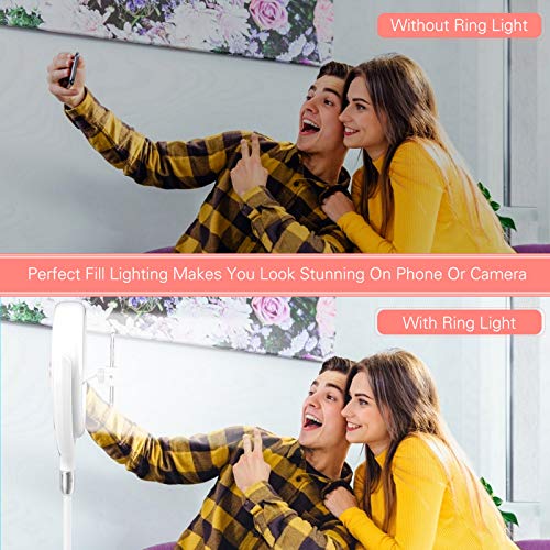【2020 Upgrade-Version】 TSYMO Selfie-Ringlicht ist mit einem halbrunden Halter, der Ihnen helfen kann, den perfekten Winkel zu finden, um Ihre spezifischen Anforderungen zu erfüllen. Im Vergleich zu anderen Stativständern ist der runde Metallfuß so konzipiert, dass er die Stabilität erhöht, sodass er nicht umkippt. 96 Stück fortschrittliche LED-Lampenperlen lassen Ihre Haut heller und glatter aussehen.