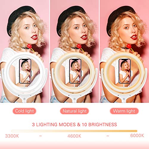 【3 Farbmodi und 10 Helligkeit】 TSYMO dimmbarer Selfie-Lichtring bietet 3 Beleuchtungsfarben: Weiß, Warmweiß und warmes Licht, allesamt Modus hat 10 einstellbare Helligkeit, 3300 K – 6000 K Farbtemperatur, Dimmbereich von 10% bis 100 %, Beleuchtung natürlicher, erfüllt Ihre unterschiedlichen Beleuchtungsbedürfnisse.