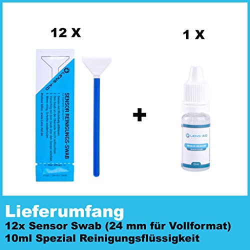 Lens-Aid Sensor Reinigungsset mit Swabs und Flüssig-Reiniger für Vollformat Kameras: 12x Mikrofaser Swab 24 mm einzeln verpackt inkl. Liquid