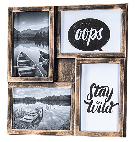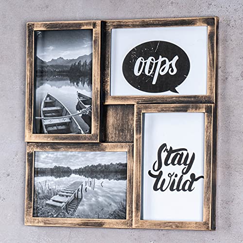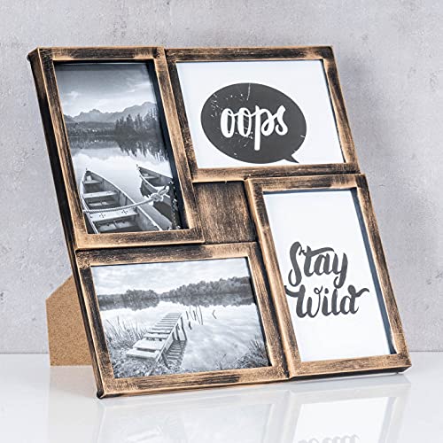 levandeo Bilderrahmen 4 Fotos Schwarz Kupfer Gold Aufsteller Fotogalerie Fotorahmen Bildergalerie Fotocollage Collage Bildercollage Glasscheibe Tischdeko