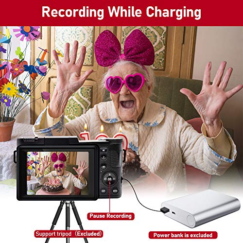 ♥ 【grafische Darstellung während des Ladevorgangs】 Digitalkamera unterstützt die grafische Darstellung während des Ladevorgangs, sodass Sie damit jedes gewünschte Video aufnehmen können, ohne sich Sorgen machen zu müssen, dass der Akku abgelutscht wird. Die Vlog kamera mit 2 wiederaufladbaren Batterien geliefert und kann direkt über das USB-Kabel (inbegriffen) aufgeladen werden. Die Kamera unterstützt die Pausenfunktion. Drücken Sie die Taste „Pause“, um die grafische Darstellung in derselben Datei fortzusetzen, ohne sie neu zu starten.