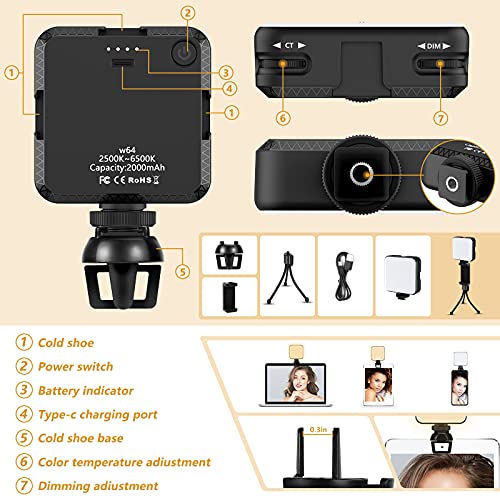 Lange Standby-Zeit: Die Videokonferenz Licht verfügt über einen eingebauten 2000-mAh-Akku und eine Typ-C-Schnittstelle (3,7 V / 6 W). Die maximale Helligkeitsleistung kann 2 Stunden lang verwendet werden, die minimale Helligkeitsleistung kann bis zu 10 Stunden lang verwendet werden und die volle Leistung dauert freilich 2 Stunden. Schieben Sie die Streichung, stellen Sie die Farbe auf der leimen Seite ein, Helligkeit 850LUX / 0,3 m, CRI größer als 95, es ist die beste Urnengang für grafische Darstellung-Videos.