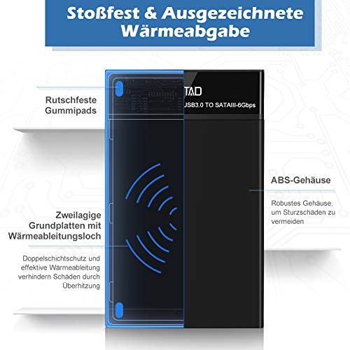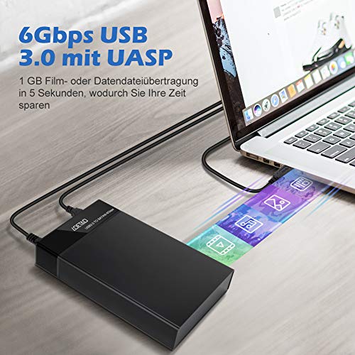 Schnellere Geschwindigkeit: USB-3.0-Protokoll UASP ermöglicht das Datenraten von bis zu 6Gbps und ist 70% schneller als bei herkömmlichem USB 3.0. 1 GB Film- oder Datendateiübertragung in 5 Sekunden