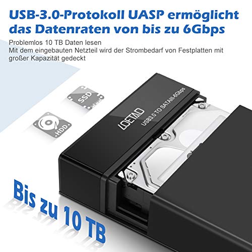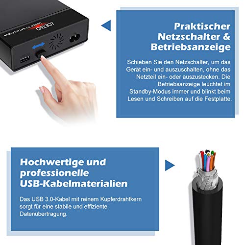 LOETAD Festplattengehäuse 3,5/2,5 Zoll USB 3.0 für SATA I/II/III SSD und HDD mit USB 3.0 Kabel und Netzteil