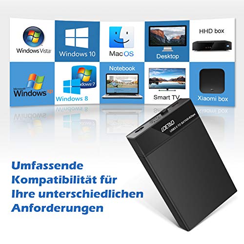 Weitgehend kompatibel: Loetad externes Festplattengehäuse unterstützt 3.5/ 2.5 Zoll HDD oder SSD mit SATA Ports. Kompatibel mit Samsung WD Toshiba SanDisk Seagate Hitachi usw