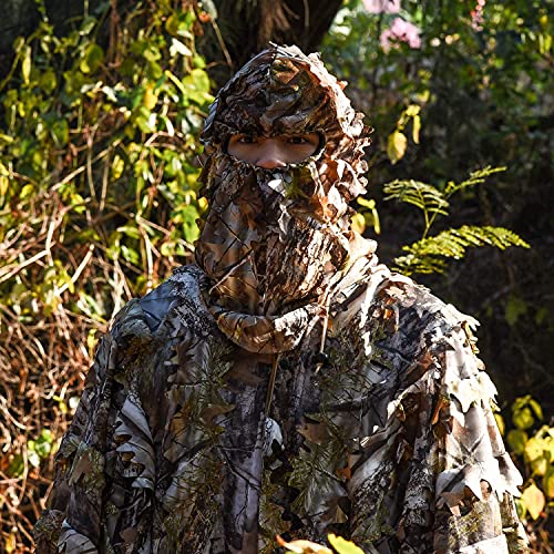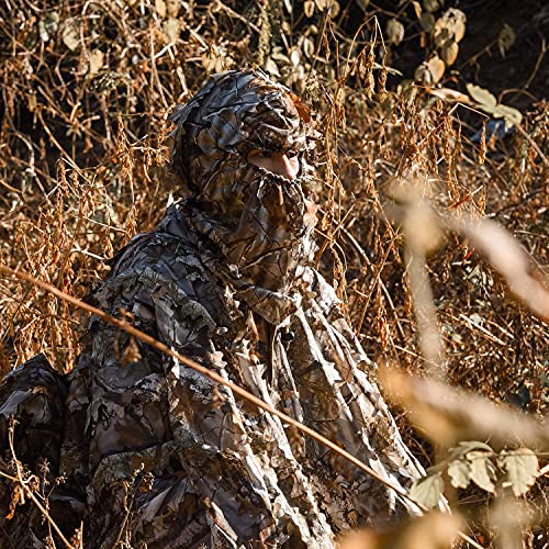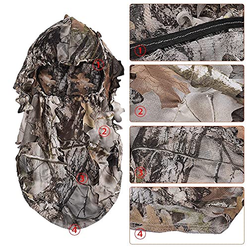 ✅ DESIGN: Die Tarnmaske hat ein realistisches und naturgetreues 3D Laubblätter Design der heimischen Wälder.