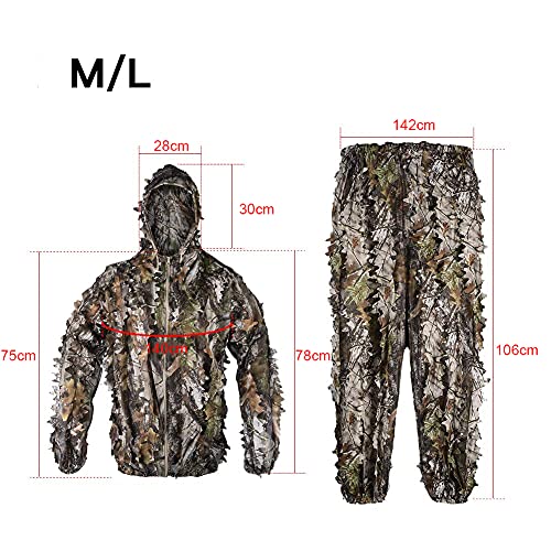 LOOGU Tarnanzug mit Kapuze Leicht und Atmungsaktiv Tarnung Jacke und Hose 3D Design Woodland Camouflage Tarnkleidung…
