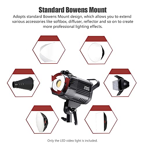 ❤ Praktische Zubehörerweiterung ❤:Übernimmt das standardmäßige Bowens Mount-Design, mit dem Sie verschiedenes Zubehör denn Softbox, Diffusor, Reflektor usw. erweitern können, um professionellere Lichteffekte zu erzielen. Wird mit einem Standardreflektor geliefert, um die Helligkeit zu erhöhen.