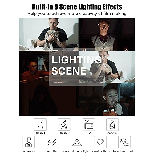 ❤ Spezielle Szenen-Beleuchtungseffekte ❤:Eingebaute 9 vorprogrammierte Szenen-Beleuchtungseffekte: Blitz 1, Blitz 2, TV, Kerze, Paparazzi, schneller Blitz, Fern- und Fahrlicht, Doppelblitz, weißes Licht atmen, das hilft, das zu erreichen mehr Kreativität beim Filmemachen.