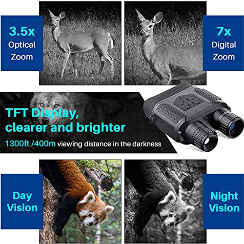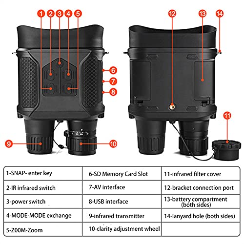 【Multi-Darstellung Nachtsichtbrille】 7x digitales Zoom, 31mm Objektive Blende und 9 ° -Glachwinkel, sodass Sie in eine breitere Objektsicht vergrößern oder verkleinern können. Mit Infrarot-Ferngläser können Sie Fotos und HD-Videos aufnehmen. Die reibungslose Ebenbild- und Pause-Funktionen ermöglichen es Ihnen, Ihnen jederzeit wunderbare Momente zu überprüfen, die für Nachtjagd, Patrouillenerkennung, Sicherheit und Überwachung verwendet werden können.