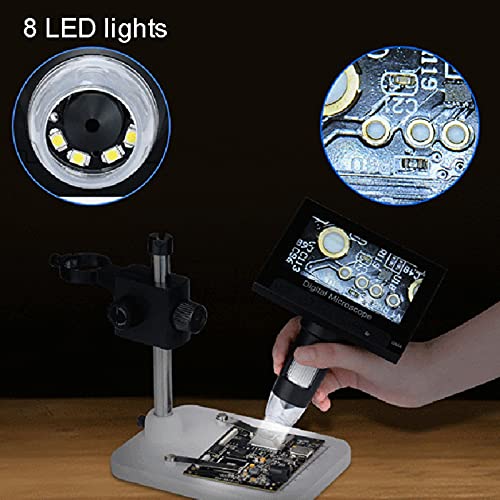 Eingebaute 8 LED-Leuchten: Das LCD-Digitalmikroskop mit 8 einstellbaren LED-Leuchten ermöglicht es, in Bereichen mit unzureichendem Licht klar zu sehen. Der mitgelieferte Metallständer sorgt für stabile Aufnahmen und ist nützlich für das Betrachten mit höherer Leistung, um Verwacklungen zu minimieren und das Präparat klar im Fokus zu halten.