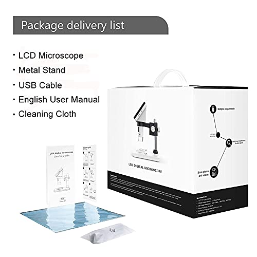 Angenommenes 8 einstellbares LED-Licht: Das 8 einstellbare LED-Licht sorgt dafür, dass Ihre Proben klar und hell sind. Ein im Lieferumfang enthaltener Metallständer ermöglicht ruhige Aufnahmen und ist praktisch, wenn Sie Ihr Präparat scharf betrachten.