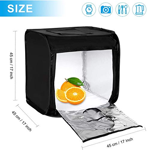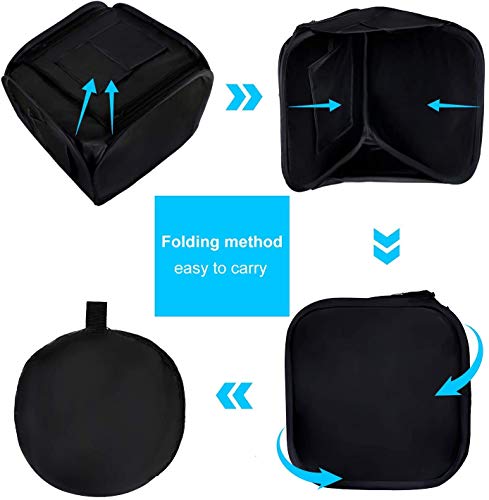 FOLDABLE AND PORTABLE: Das Fotozelt ist leicht, platzsparend, widersteht der Kompression und ist einfach zu verstauen. Es kann in 3-5 Minuten zusammengebaut werden. Es kann einfach und ohne Werkzeug eingerichtet und getragen werden und kann jederzeit und überall verwendet werden. Dies ist Ihr ideales kleines mobiles Fotostudio
