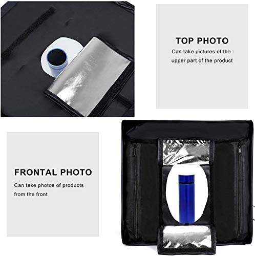 LED DIMMABLE: Faltbare Fotostudio-Verpackungsbox, LED SMD passt die Helligkeit schrittweise an, ohne Flimmern und Verzerrungen, längere Lebensdauer, 5500K-Farbtemperaturdesign, echtes weißes Licht, professionelles reflektierendes Gewebeoberflächendesign aus körnigem Silberfilm. Das Licht wird heller und gleichmäßiger in der Studio. Alle Ecken machen die Blende heller, was das Licht im Studio erheblich verbessern kann.