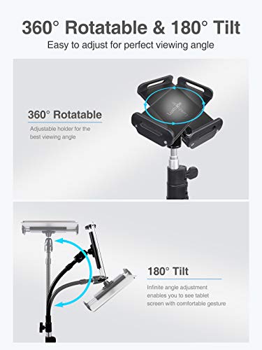 Luxtude Metall iPad Ständer Höhenverstellbar, 72 Zoll Hoch iPad Halterung Stativ, Schwanenhals Tablet Halter & Tablet…