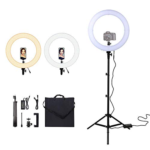[3 Lichtmodi und 10 Helligkeitsstufen] – 18 Steuer dimmbares LED-Ringlicht mit 3 Beleuchtungsmodi: warm, natürlich und kalt. In jedem Beleuchtungsmodus stehen 10 einstellbare Helligkeiten zur Auswahl. Sie können die Modi und die Helligkeit an Ihre Beleuchtungsbedürfnisse bei verschiedenen Gelegenheiten einsetzen