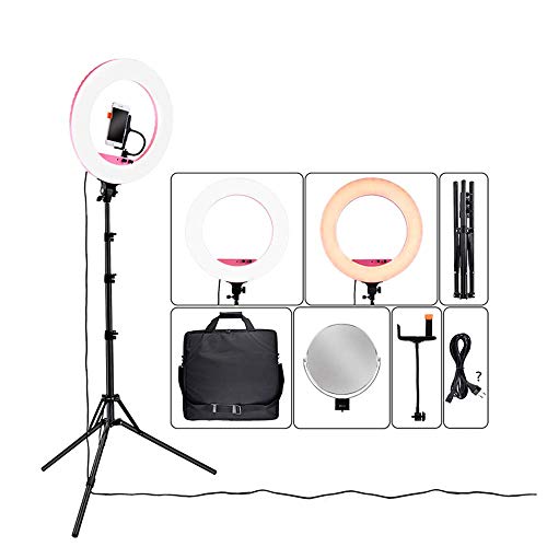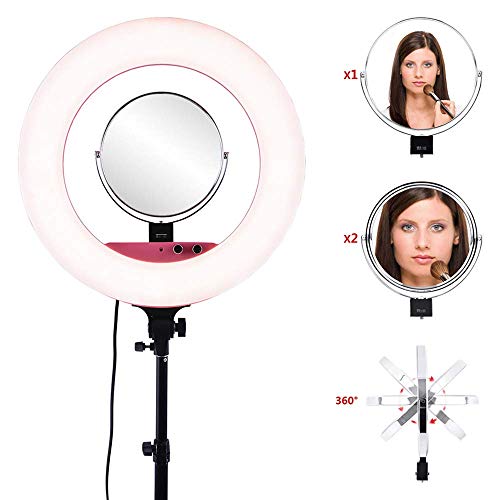 [3 Modi Licht & einstellbare Helligkeit] Mit 3 Beleuchtungsmodi (3200-5800k) und 5 Helligkeitsanpassungen für jeden Modus sowie 480 Teilen bietet dieses Kameraringlicht 50% helleres Licht und ermöglicht es Ihnen, das Licht frei zu dimmen und zu geben Sie haben die vollständige Kontrolle über Ihren Lichteffekt.