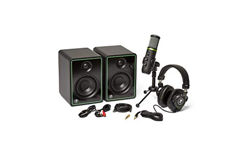 Das Mackie Creator Bundle ist die ultimative Ablösung für Autoren von Inhalten, Podcaster, Streaming und darüber hinaus. Es ist nicht jedoch ein perfektes Setup für den Studiotisch, sondern auch extrem unkompliziert für unterwegs. Das EM-USB-Mikrofon wird über das ultraschnelle USB-C direkt an den Computer angeschlossen und nimmt alles mit perfekter Detailgenauigkeit auf, ohne dass ein EQ erforderlich ist. Außerdem bekommt man 2 professionelle Möglichkeiten des Monitorings sowohl für die Live-Produktion als auch für die Nachbearbeitung. Die MC-100-Kopfhörer bieten den klaren Klang und die Geräuschisolierung, die man braucht, um fokussiert zu sein. Für die Nachbearbeitung oder einfach jedoch zum Separieren einspeisen unsere beliebten CR3-X-Monitore professionellen Sound in Studioqualität, so dass man immer stabil sein kann, dass die Zuschauer oder Zuhörer eine ausgewogene Mischung erhalten. CR3-X 3” Creative Reference Multimedia Monitore – Professioneller Sound in Studioqualität – Plug and Play o Lautstärkeregler an der Vorderseite mit Ein/Aus/Lautstärkeregelung o Entscheide mit dem praktischen Umschalter, welcher Lautsprecher links und welcher rechts wiedergibt o Schließe für sofortigen Musikgenuss Dein Smartphone oder eine andere Quelle an den 1/8″-Aux-Eingang an o Frontseitiger Kopfhöreranschluss mit automatischer Passivierung des Lautsprecherausgangs o Flexible Eingänge: 1/4″, 1/8″ und RCA – Komponenten und Design in professioneller Qualität für optimale Klangeigenschaften – Mitgeliefertes Zubehör o 1/8″ auf Stereo-Cinchkabel zum Anschluss des Computerausgangs an die Lautsprecher o 1/8″ auf 1/8″ Kabel zum Anschluss eines Smartphones oder eines Medienabspielgeräts o Lautsprecherkabel EM-USB Kondensator Mikrofon • Professionelle Audioqualität • Schnelle USB-C Verbindung • Eingebautes Kopfhörer-Monitoring • Verstärkungssteuerung und Stummschaltung eingebaut • Robuste Konstruktion • Richtcharakteristik: Niere • Mitgeliefertes Zubehör: o Dreibeinstativ o Mikrofon-Clip o USB-C-Kabel MC-100 Professionelle Kopfhörer – Leistungsstarke Treiber sehen nach klaren, präzisen Sound – Bequeme Ohrpolster und Kopfbügel für stundenlangen Einsatz – Inklusive 1/4″-Zwischenteil Mitgelieferte Software • Pro Tools® | First und Waveform™ OEM: Professionelle Software und Plugin-Bundles inklusive • Die exklusive Musician Collection für ProTools | First enthält 23 Plugins wie BBD Delay, Eleven Lite, 304E EQ und 304C Compressor • Das DAW Essentials™ Bundle für Waveform OEM enthält 16 leistungsfähige Plugins wie Equalizer, Turbolader, Reverber8 und Limiter