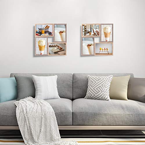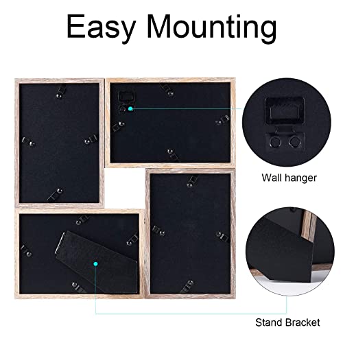 Größe: Der Bilderrahmen ist freistehend. Jeder Rahmen passt auf ein 15 x 10 cm (4 x6“ )großes Foto, und der gesamte Rahmen misst 28 cm x 28 cm x 3 cm. Kommt mit leicht zu öffnenden Laschen auf der Rückseite für einfachen Zugang zum Laden von Fotos. Der Rahmen kann für den Tisch gestellt und an die Wand gehängt werden.
