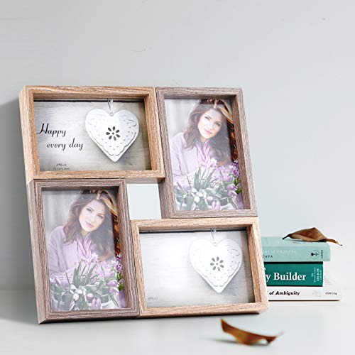 MAKITESY Multi Bilderrahmen für 4 Fotos, 10 x 15 cm, Holzfarbe Baby Family Fotorahmen Collage für Tabletop…