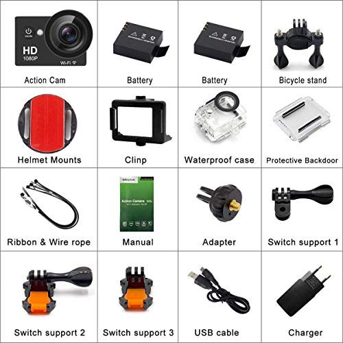 Mbylxk Action Cam 1080P WiFi Sport Kamera 30m Wasserdicht Ultra FHD 12MP Action Cam 170°weiter Winkel Actioncam mit 2…