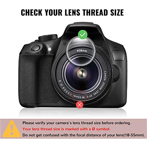 Bitte zögern Sie nicht, uns über das Amazon-Nachrichtensystem zu kontaktieren, wenn Sie mit dem UV-Filter zu irgendeinem Zeitpunkt nicht ganz zufrieden sind. Hinweis: Bitte überprüfen Sie vor dem Kauf den Durchmesser Ihrer Linse, um die korrekte Größe zu überprüfen. Ihr Objektivdurchmesser ist mit einem „“ -Symbol auf dem Objektiv gekennzeichnet.