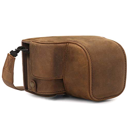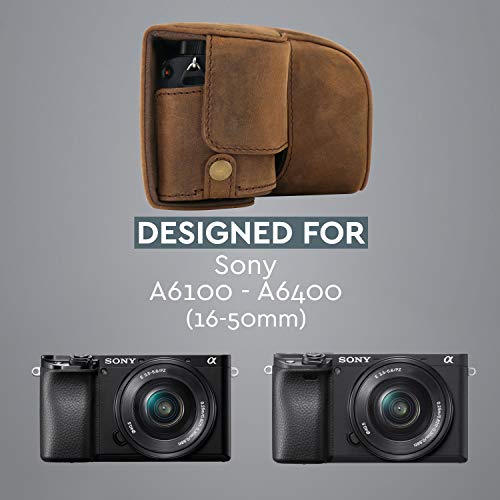 MegaGear Ever Ready Echtleder Kameratasche mit Trageriemen kompatibel mit Sony Alpha A6100, A6400 (16-50mm)