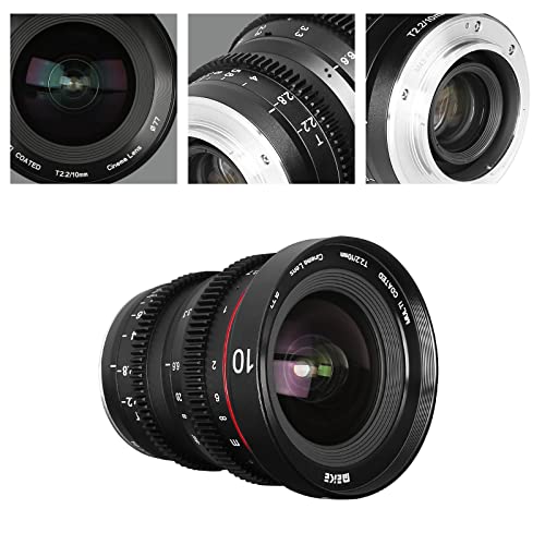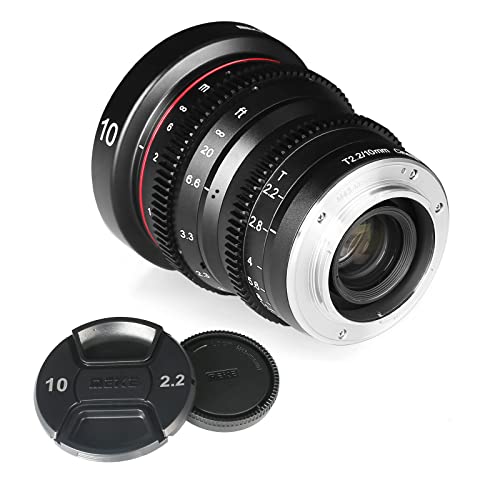 Meike 10mm T2.2 Große Blende Manueller Fokus Low Distortion 6K Mini Prime Cine Objektiv für Micro Four Thirds Mount Kompatibel mit Olympus Panasonic Lumix Kameras und BMPCC 4K Zcam E2 GH5 GH6