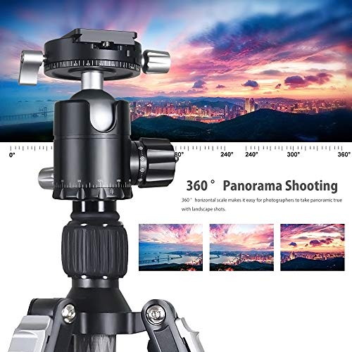 360° Panorama Kugelkopf: Der 36mm Metallkugelkopf kann um 360° gedreht werden, das ölfreie Dämpfungsdesign macht den Betrieb sanfter und schneller, um perfekte foto in jedem Winkel zu erzielen. Die Wasserwaage hilft zumal, das Gleichgewicht des Stativs zu finden, und die genaue 360°-Skala ermöglicht eine akkurat Bildausrichtung und erleichtert di.