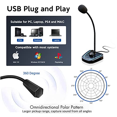 XIAOKOA Mikrofon PC USB Mikrofon Laptop mit Lautstärke Drehung und RGB-Atemlicht, Desktop Mikrofon High Definition Audio…