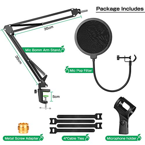 Mikrofonständer, AGPtek Mikrofonarm Ständer mit Ausleger/Mic Boom Arm, Metallschraubadapter, Popschutz, Kabelbinder und…